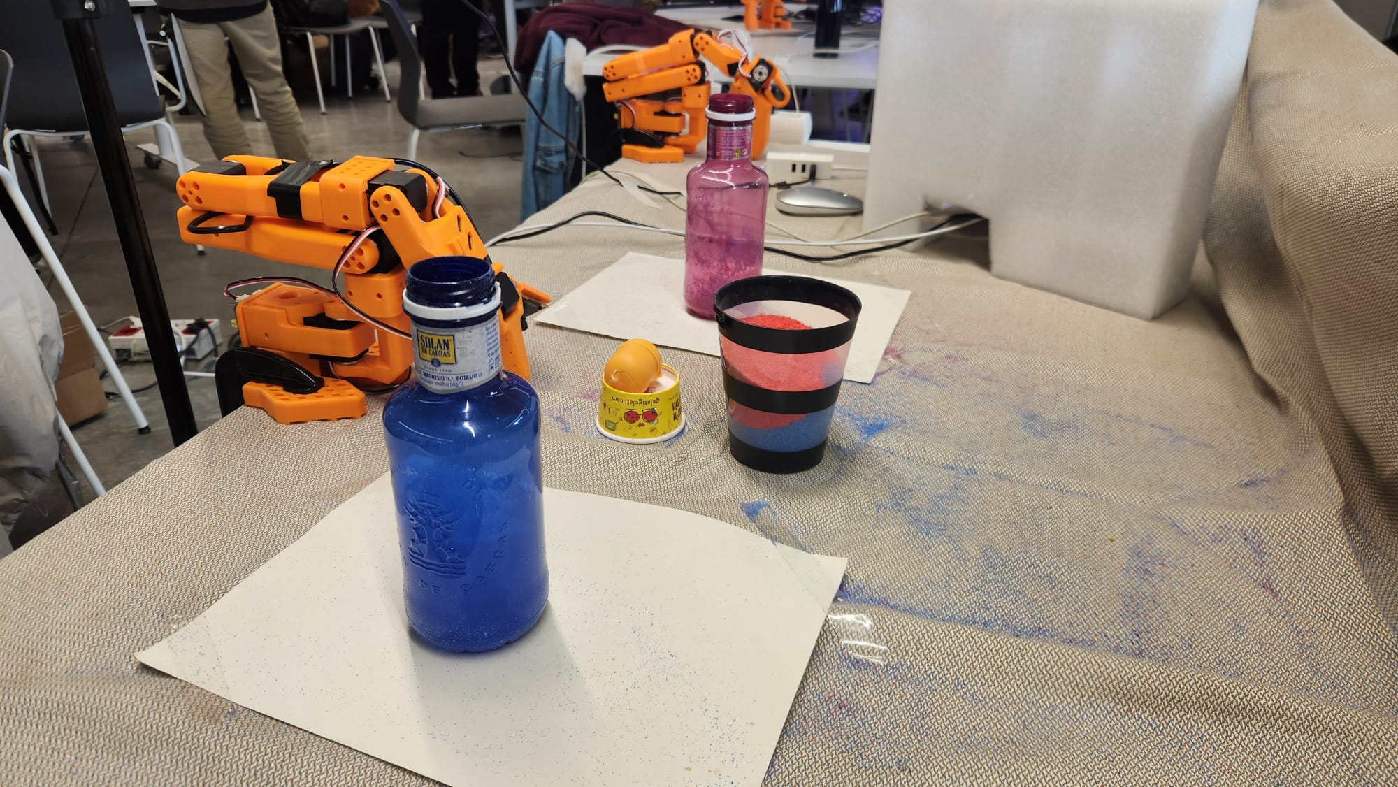 Normally, the plan was to change the cups manually between orders. But the crowd was so dense around the table that moving to reach the robot was physically impossible.