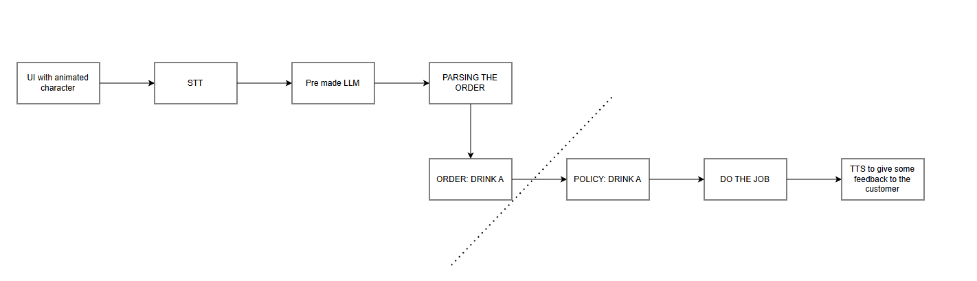 To make it even more competitive, I proposed a full "catchy" pipeline: STT (Speech-to-Text) -> LLM -> Robot -> TTS (Text-to-Speech). Because nowadays, whatever includes an LLM gets more attention :)